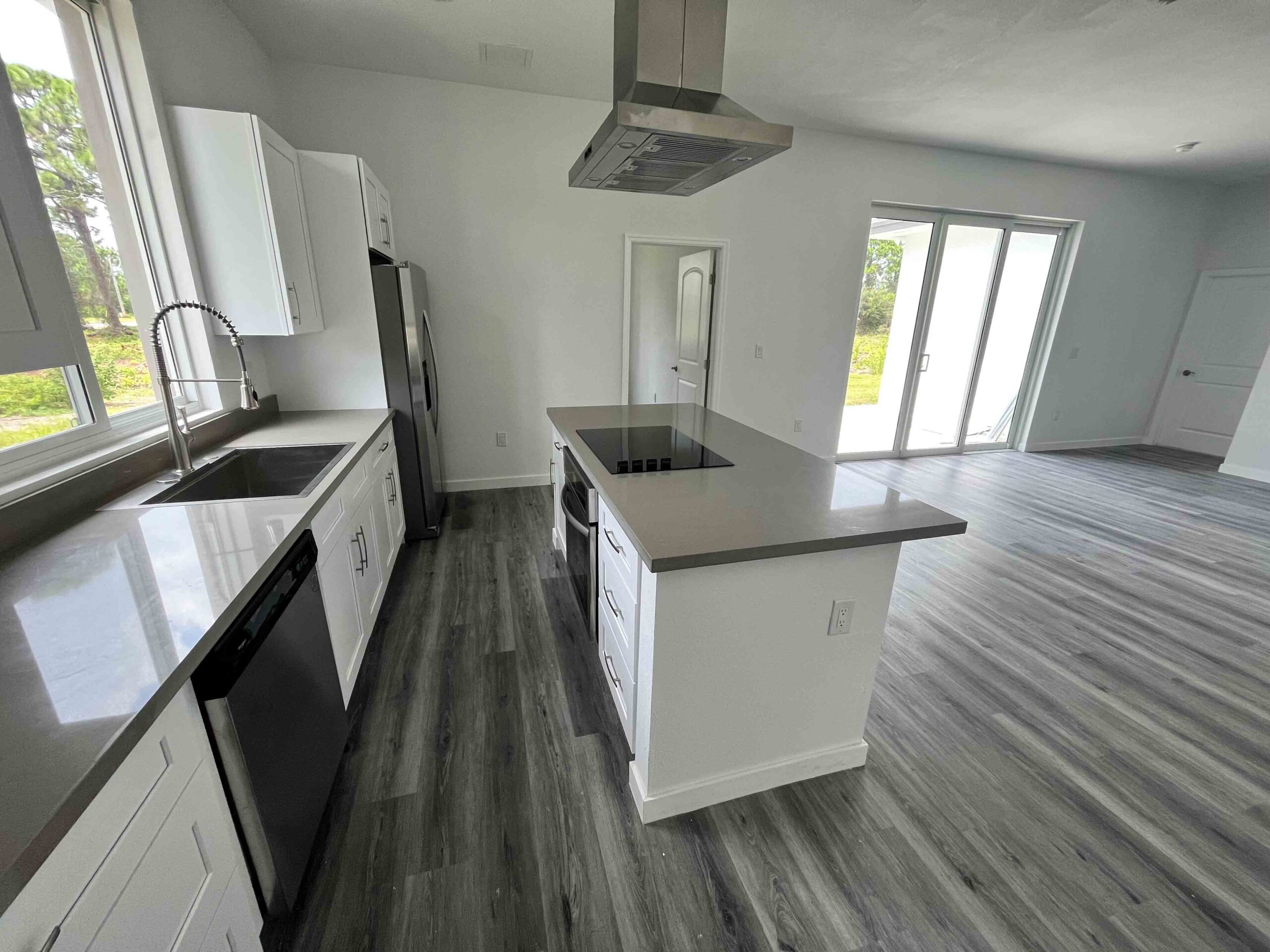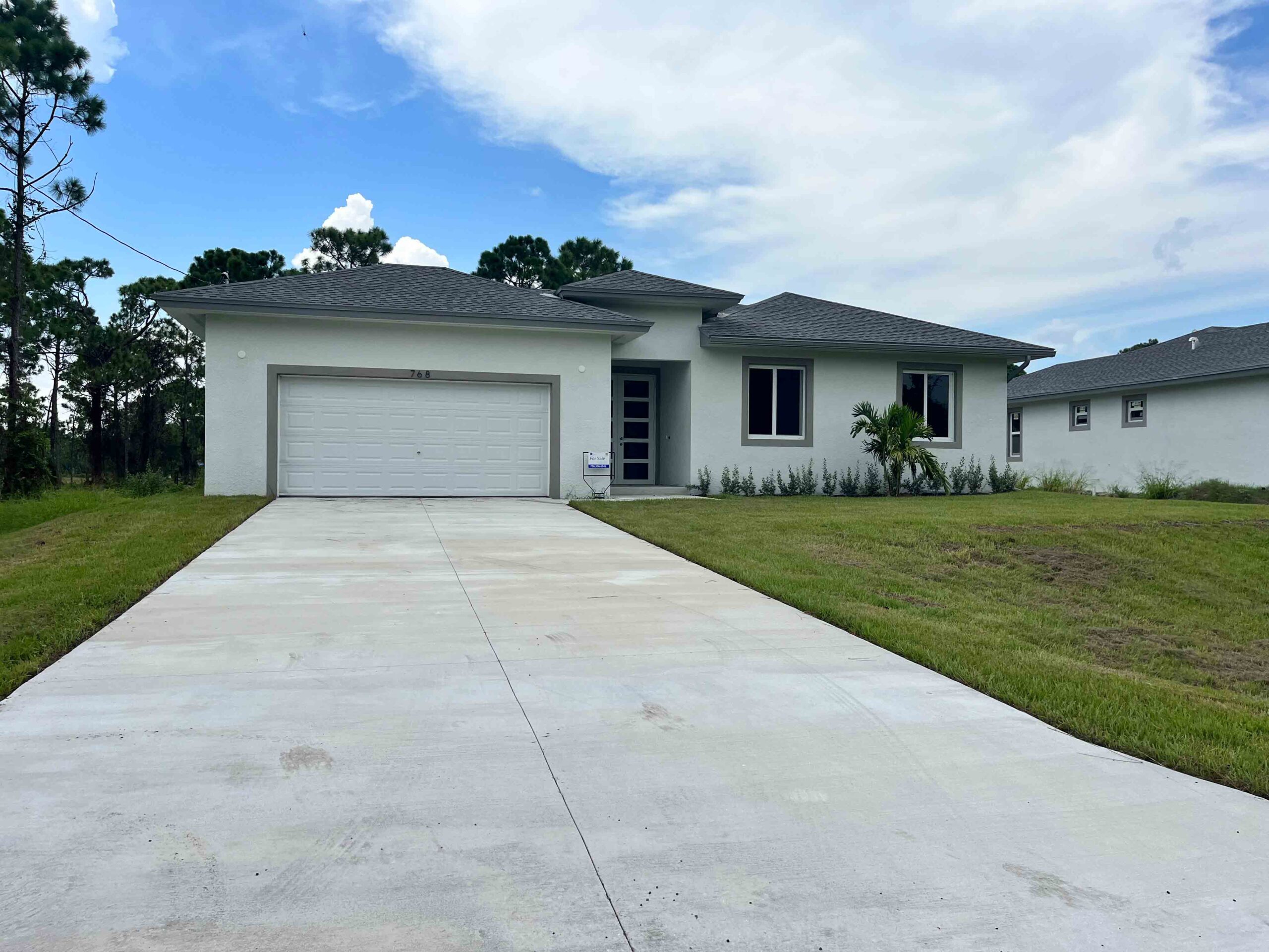 El garaje es para dos vehículos y desde el mismo se accede a la cocina a través del laundry y el pantry. El patio posterior tiene un espacio de transición cubierto con una pérgola.